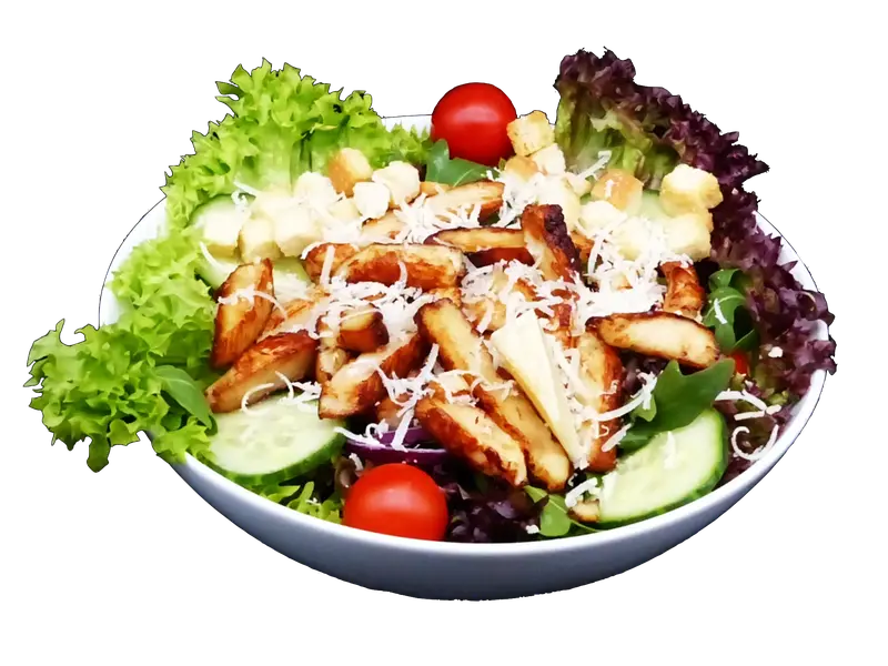Gemischter Salat mit Hühnerbruststreifen, Croutons, Parmesan