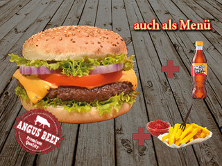 125g Angus-Rindfleisch, Tomaten, Zwiebeln, Salat, Burger-Sauce, Käse